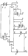 снабженной укрепляющей, отгонной и отпарными секциями, а также контактными