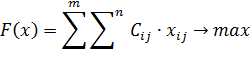 F(x)=40x11+10x12+10x13+0x14+25x21+30x22+25x23+0x24+1000x31+30x32+15x33+0x34+10x41+20x42+1000x43+0x44→min [руб./мес.];