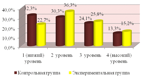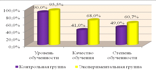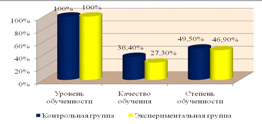 среза обучающихся контрольной группы № 132, которые обучались с применением