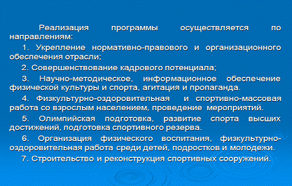 физической культуры, спорта, туризма, федеральных и областных программ развития