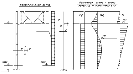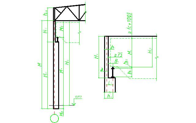 Рис. 16. Конструктивная и расчетная схема фахверка