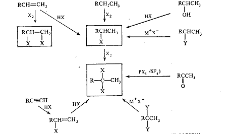 В основе синтеза галогенорганических соединений лежат реакции с участием