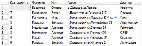 Пациенты: код пациента, фамилия пациента, имя пациента,