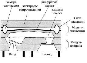 миниатюаризированный насосный механизм, который состоит из микромеханизмов,