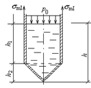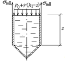 Цилиндрическо-конический резервуар, заполненный до уровня h жидкостью с удельным весом g и в верхней части наполненный газом
