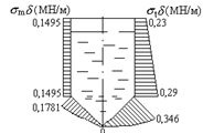 Исследовать изменения окружных и меридиональных напряжений по высоте