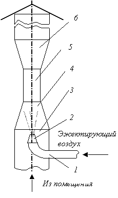 подсасывается воздух из помещения. В конфузоре 4 и горловине 5 происходит перемешивание