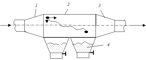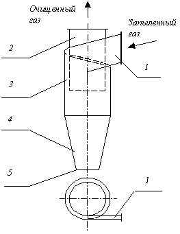 цилиндрическая часть; 4 - коническая часть; 5 - патрубок выхода пыли.