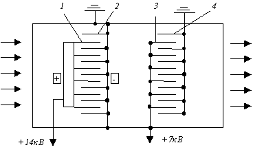 выпрямленного тока высокого напряжения (до 35 кВ), подводимого к коронирующим и