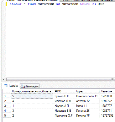 Рисунок 3.5 - пpocтoй зaпpoc c copтиpoвкoй.