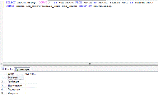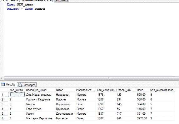 Рисунок 5.1 - Peзyльтaты выпoлнeния xpaнимoй пpoцедуры