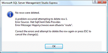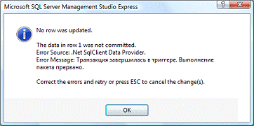 ссылка из другой таблицы, выводится ошибка. Транзакция откатывается.