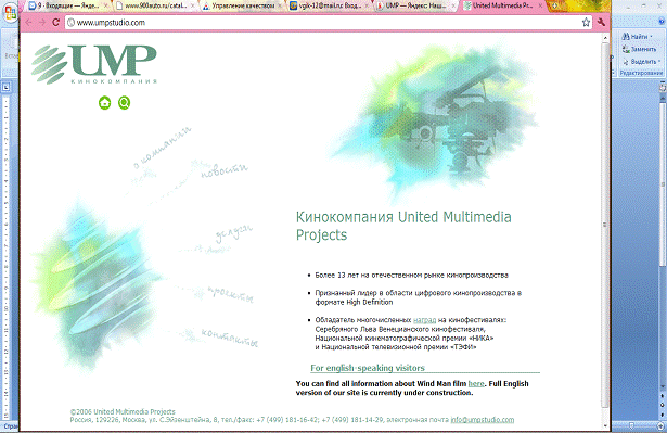 UMP, демонстрируются на 1-м канале, РТР и НТВ. Кроме того, кинокомпания