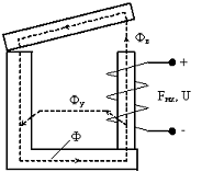 обмотка электромагнита обесточивается, в системе существует остаточный поток,