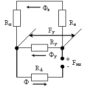 магнитной системы, по заданной магнитной МДС катушки определим потоки рабочего