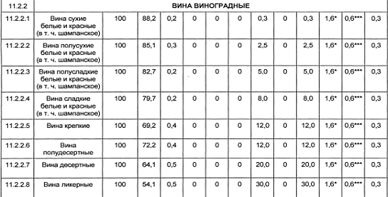 вина - Алиготе, Рислинг; крепкие и десертные вина типа хереса, мадеры и др.