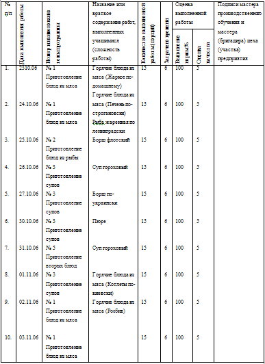 учебный день" мастер записывает дату занятия, тему раздела программы,