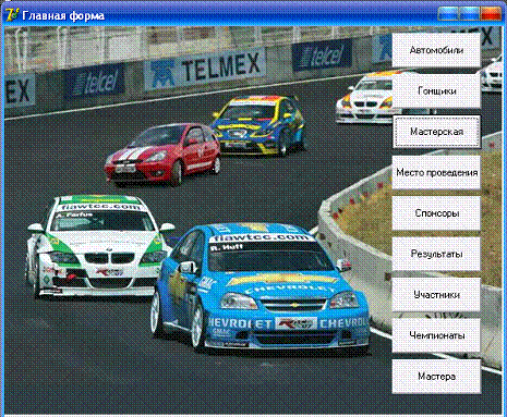 данных «Чемпионат авто» ведется учет о сотрудниках мастерской, гонщиках и