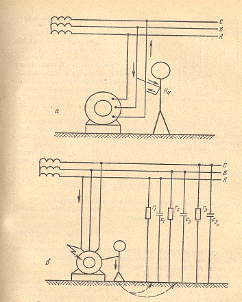 Схеми можливого „включення” людини в електричну мережу
