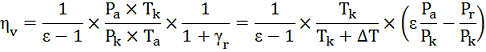 Давление воздуха в цилиндре в конце процесса наполнения Pа меньше давления на впуске Рk на величину ∆Р, которая