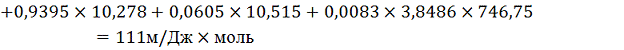 Объемная (мольная) доля избытка воздуха в продуктах сгорания: