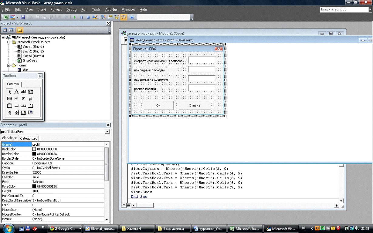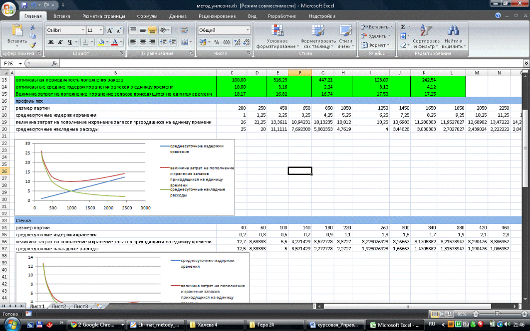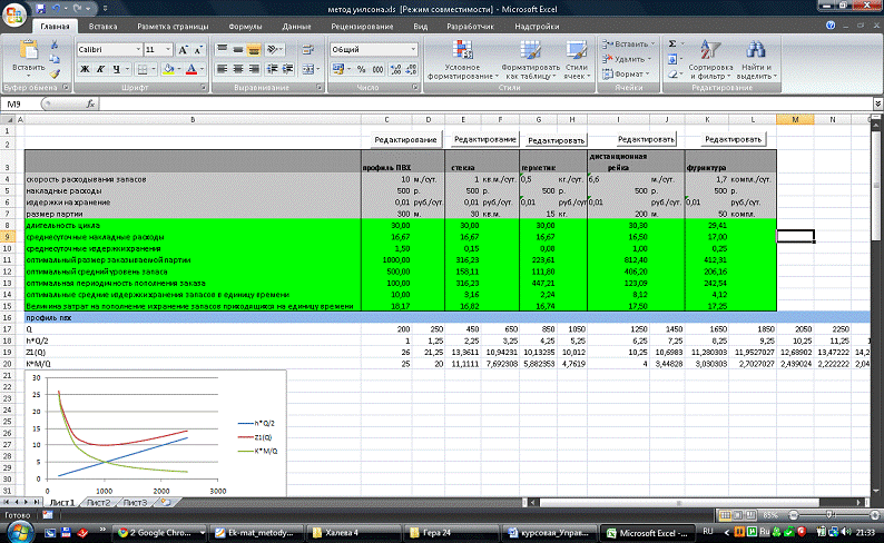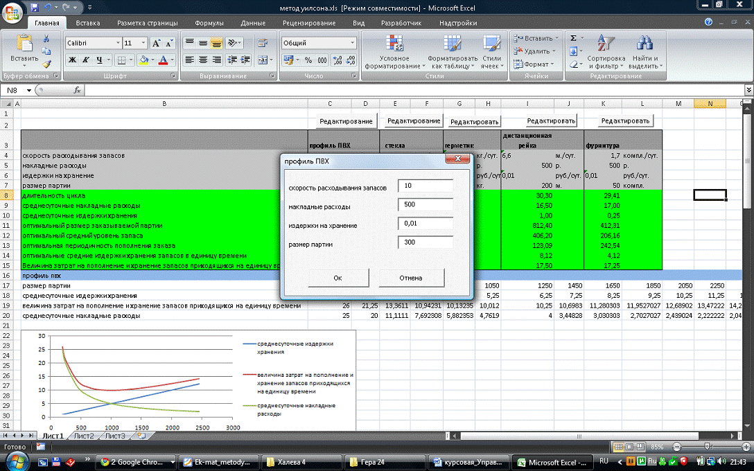находить оптимальный размер заказа, графически отображать результаты расчетов.