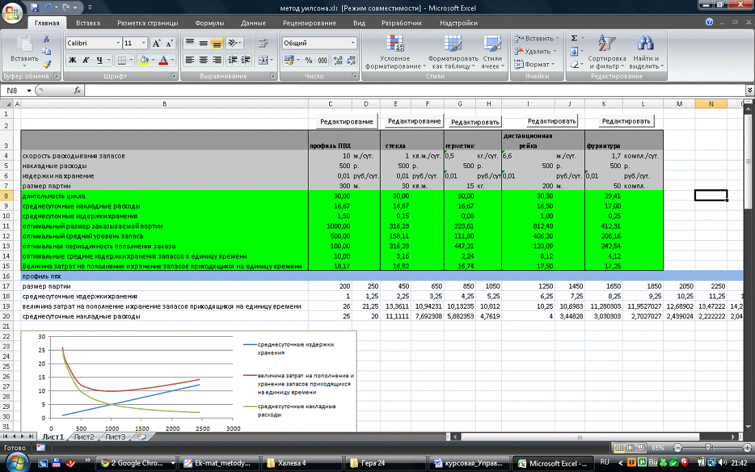 фурнитуры равны 500 руб. Издержки хранения 1 комплекта фурнитуры в течение