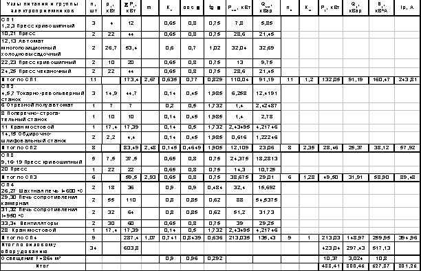 мощности с учётом нагрузок с резкопеременным графиком работы, расчёт токов