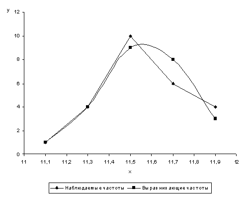нормальную (теоретическую) кривую по выравнивающим частотам