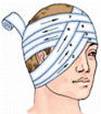 натягивая, разматывают бинт слева направо. Сначала накладывают 2-3 круговых