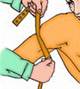 материи. Начало бинта фиксируют на конечности левой рукой, а правой,