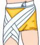 вокруг живота через спину, снова на живот, перекрывая друг друга на 1/2 или