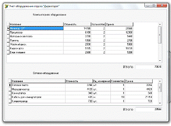 'Учет оборудования отдела "Бухгалтерия"';