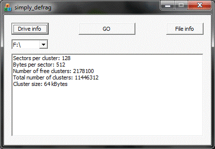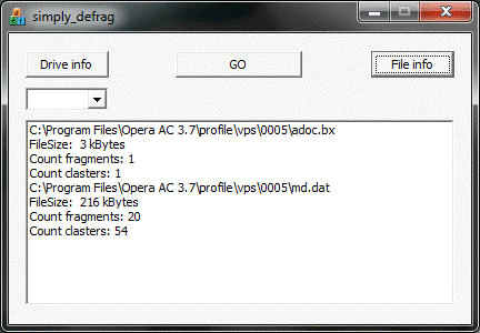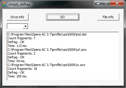 выбора файла осуществляется дефрагментация файла. Также пользователю доступна