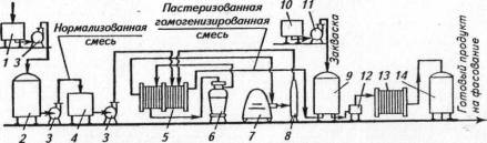 термостатным способом пастеризованную и гомогенизированную смесь охлаждают до