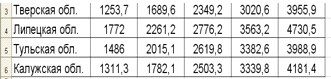 обл. возросли на 2702,2 руб., в Липецкой обл. на 2658,2 руб., В Тульской обл.