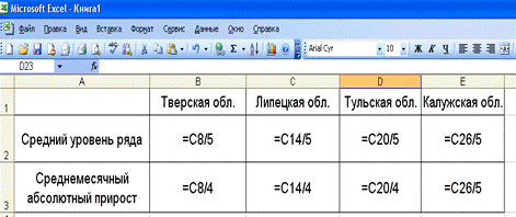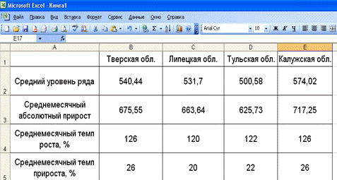 динамики денежных доходов Тверской, Липецкой, Тульской и Калужской областей за