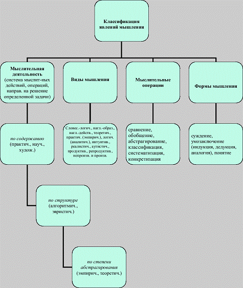 особенности мышления, классификация явлений мышления.