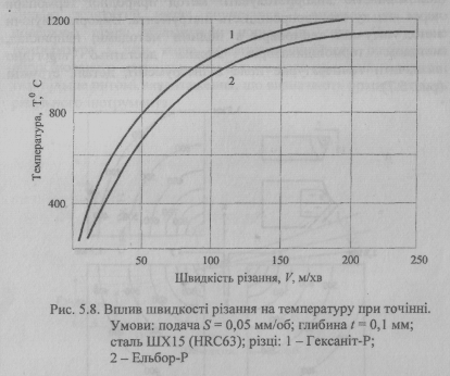 інтенсивність зростання температури зменшується. При великих швидкостях різання