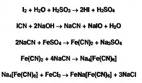 сернистой кислоты, и обнаруживают цианид-ион по образованию берлинской лазури