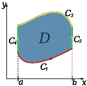 соотношение между линейным интегралом простой ограниченной кривой С и двойным