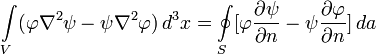 объёму V). Подставляя (1) и (2) в теорему о дивергенции, мы придем к первой