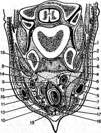 окружающие их мышцы и фасции. Взаимное расположение этих органов и покрывающих