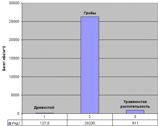 распределения радионуклидов среди растений и грибов.