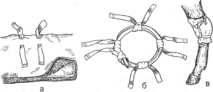 мешковины, закрепляя ее тонкой веревкой, или надевают башмак из брезента или