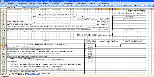 Рис. 3.3. Представление бухгалтерского баланса в MS Excel
