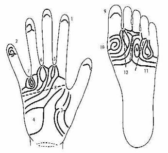 . часты узоры в области тенара;