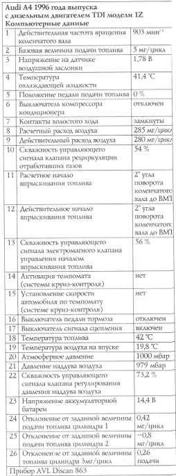 воздуха, давление наддува, положение педали подачи топлива и т. д. Отсюда