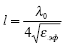 l - длина отрезков линии передачи, коэффициент n определяется выбранным числом каналов N = 2n.