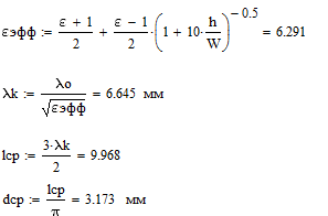 Ширина полоски кольца Wк определяется аналогично ширине